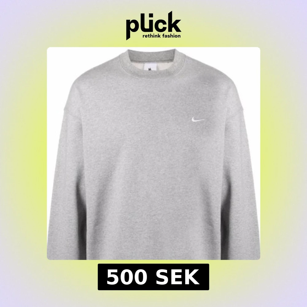 Säljer en klassisk grå sweatshirt från Nike med rund hals och en liten vit logga på bröstet. Perfekt för en avslappnad stil. Passar bra till både jeans och träningsbyxor.