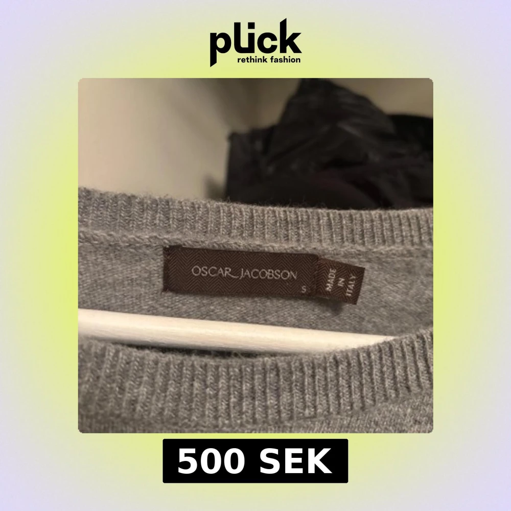 Säljer en stilren grå tröja från Oscar Jacobson. Tröjan är tillverkad i Italien och har en klassisk design med rund hals och långa ärmar. Perfekt för en elegant och avslappnad look.