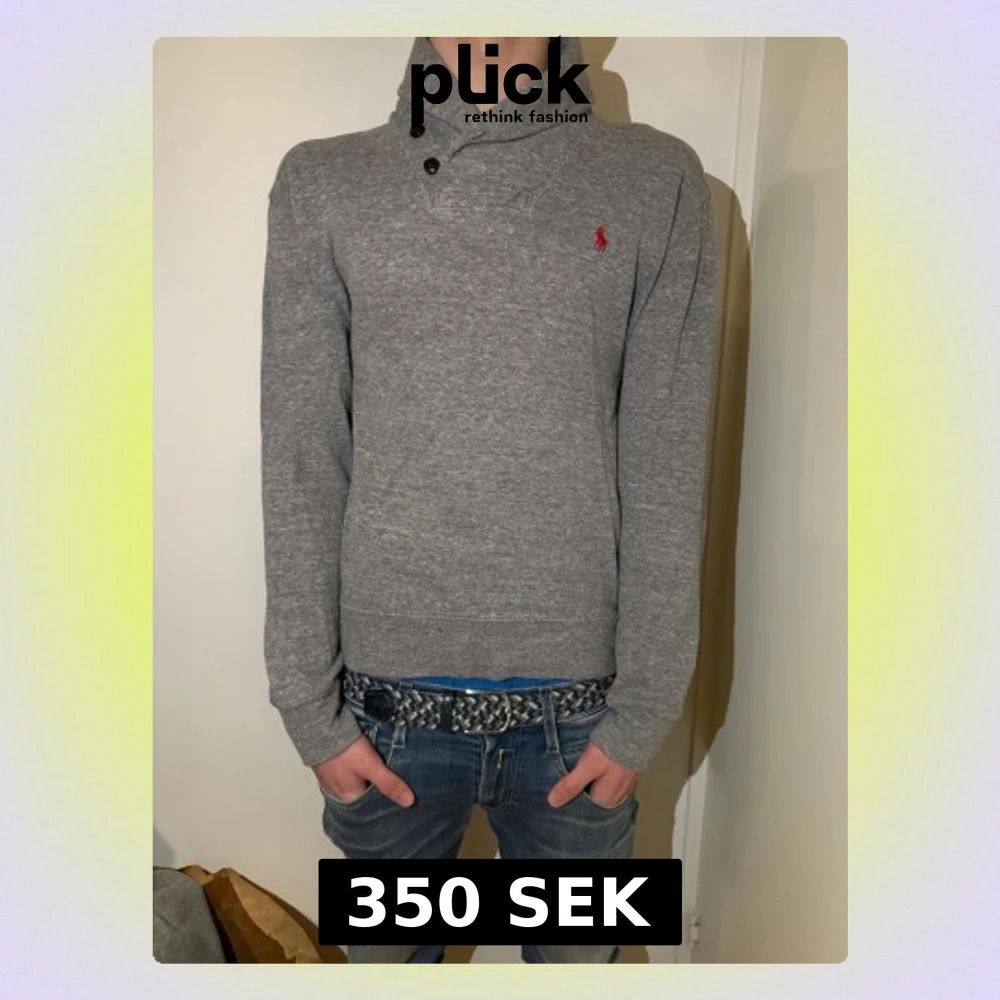 Snygg grå tröja från Polo Ralph Lauren med klassisk röd logobrodyr på bröstet. Tröjan har lång ärm, ribbade muddar och en cool krage med två svarta knappar. Perfekt för dig som gillar stilrena och tidlösa plagg.