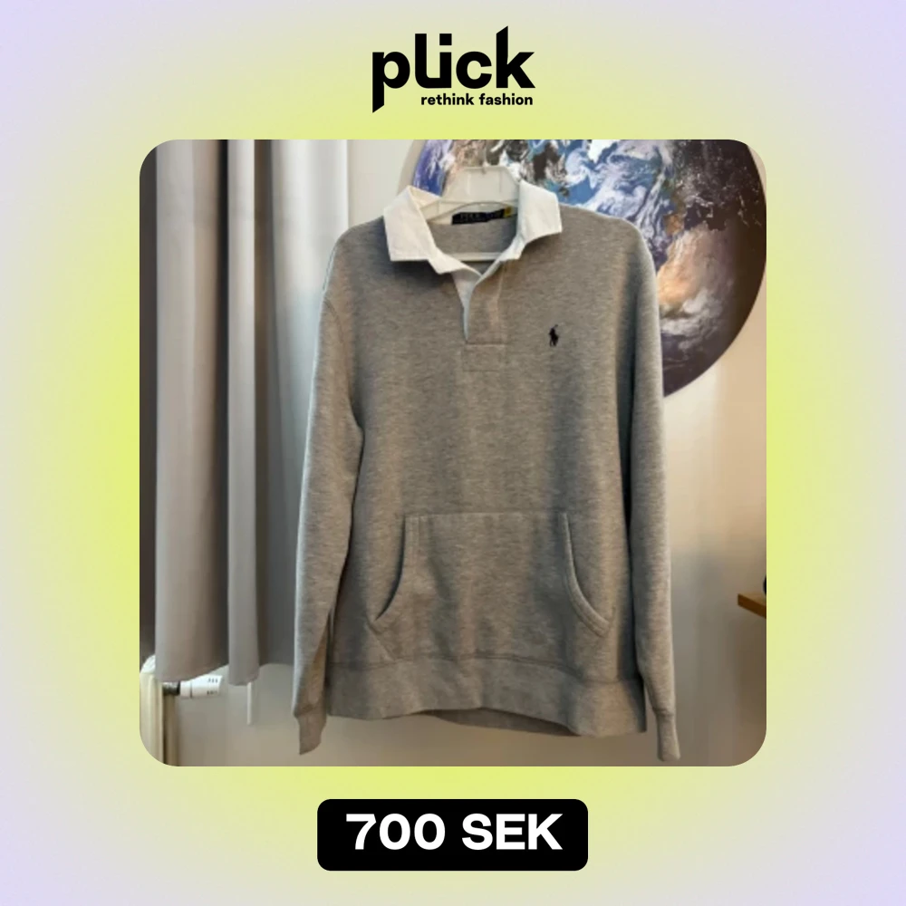 Säljer en snygg grå tröja från Ralph Lauren. Den har en vit krage och en liten broderad logga på bröstet. Tröjan har långa ärmar och en praktisk ficka på magen. Perfekt för en casual look! Oanvänd!