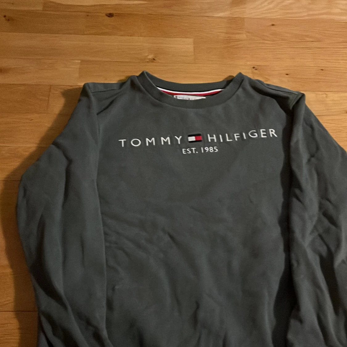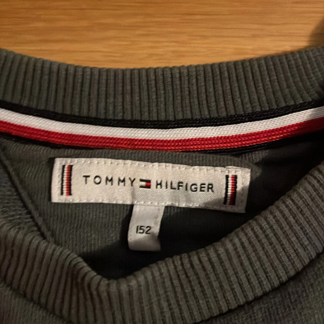 Säljer en stilren grön tröja från Tommy Hilfiger med logga på bröstet. Stl 152 bra skick