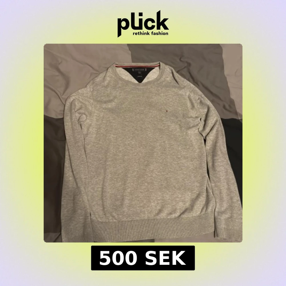 Snygg grå tröja från Tommy Hilfiger i bomull och silke. Klassisk modell med rund halsringning, diskret logga på bröstet och ribbade muddar. Perfekt för dig som gillar stilrena och bekväma plagg.