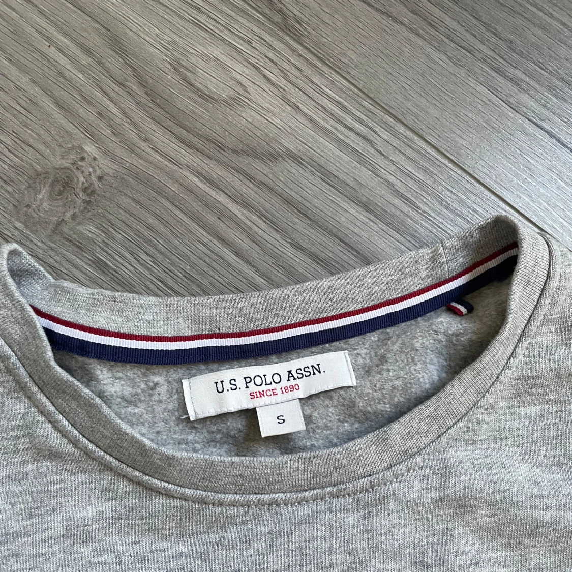 Säljer en stilren grå tröja från U.S. Polo Assn. i storlek S. Perfekt för en stilren look eller som lager under en jacka. Den är i mycket bra skick, har använt bara några gånger.