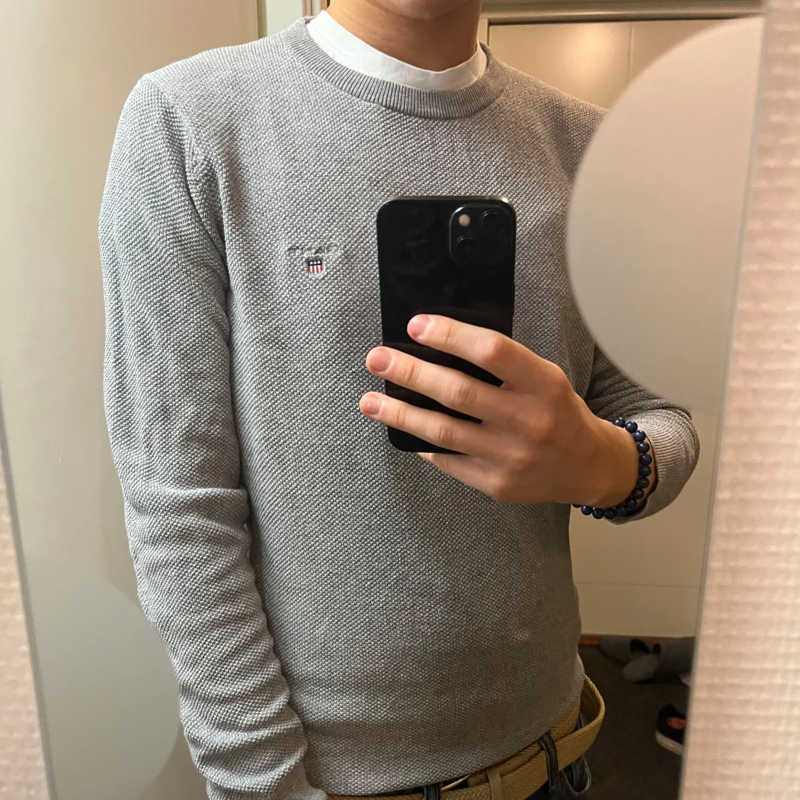 Säljer en stilren grå tröja från GANT i premium bomull. Den har en liten broderad logga på bröstet och rund halsringning. Perfekt för både vardag och lite finare tillfällen. Tröjan är i mycket bra skick och passar perfekt till höst och vår.