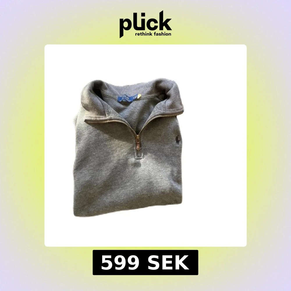 Snygg grå tröja från Polo Ralph Lauren med halv dragkedja och broderad logga på bröstet. Perfekt för en stilren och avslappnad look.