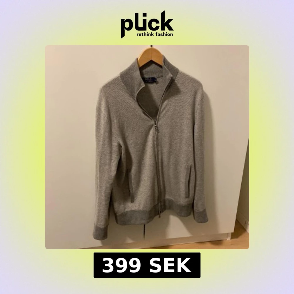 Säljer en stilren grå tröja från Polo Ralph Lauren med full zip! Den är i 100% merinoull, och är i storlek M. Den har dessvärre ett litet hål på ärmen, därav det låga priset… Men det går säkert att laga hos en skräddare:) I övrigt är den däremot i bra skick.