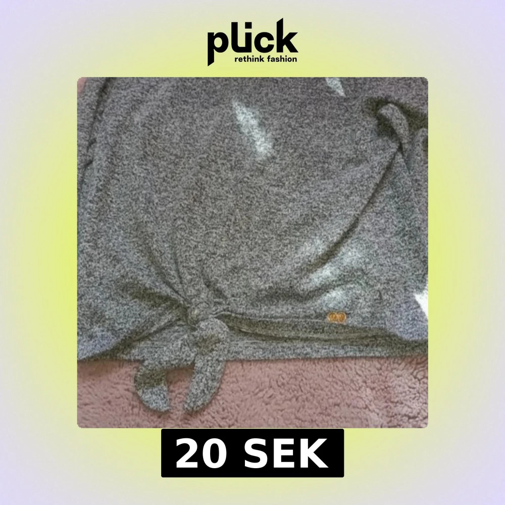 Säljer en mysig grå tröja med knyt i nederkanten och ett litet hjärta som detalj. Perfekt för en avslappnad stil.