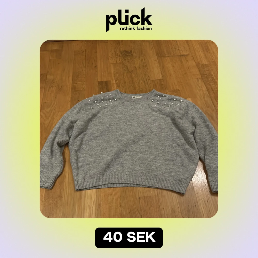 Säljer en superfin grå tröja från H&M med pärldetaljer på axlarna. Perfekt för både vardag och fest! Tröjan är i bra skick och har långa ärmar, dock har det trillat av nån pärla och visa har tappat färg. Men inget som förstör helhets intrycket. Den är gjord i ett mjukt material som håller dig varm under kyliga dagar.