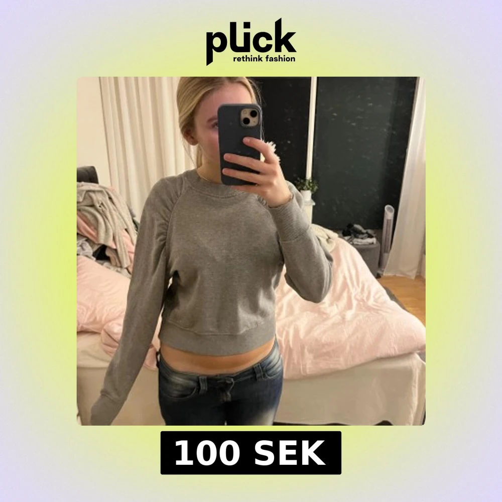 Säljer en stilren grå tröja med långa ärmar och rynkade detaljer vid axlarna. Perfekt för en avslappnad look. Har en liten fläck men ingenting man lägger märke på. Skriv om ni har några frågor!💞
