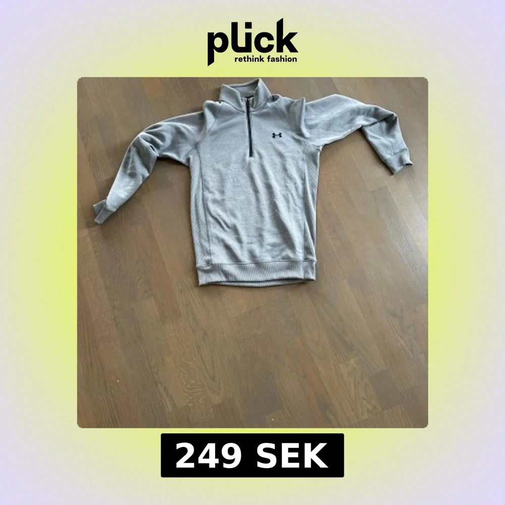 Säljer en stilren grå tröja från Under Armour med halv dragkedja och hög krage. Perfekt för träning eller vardagsbruk. Tröjan har långa ärmar och en diskret logga på bröstet.