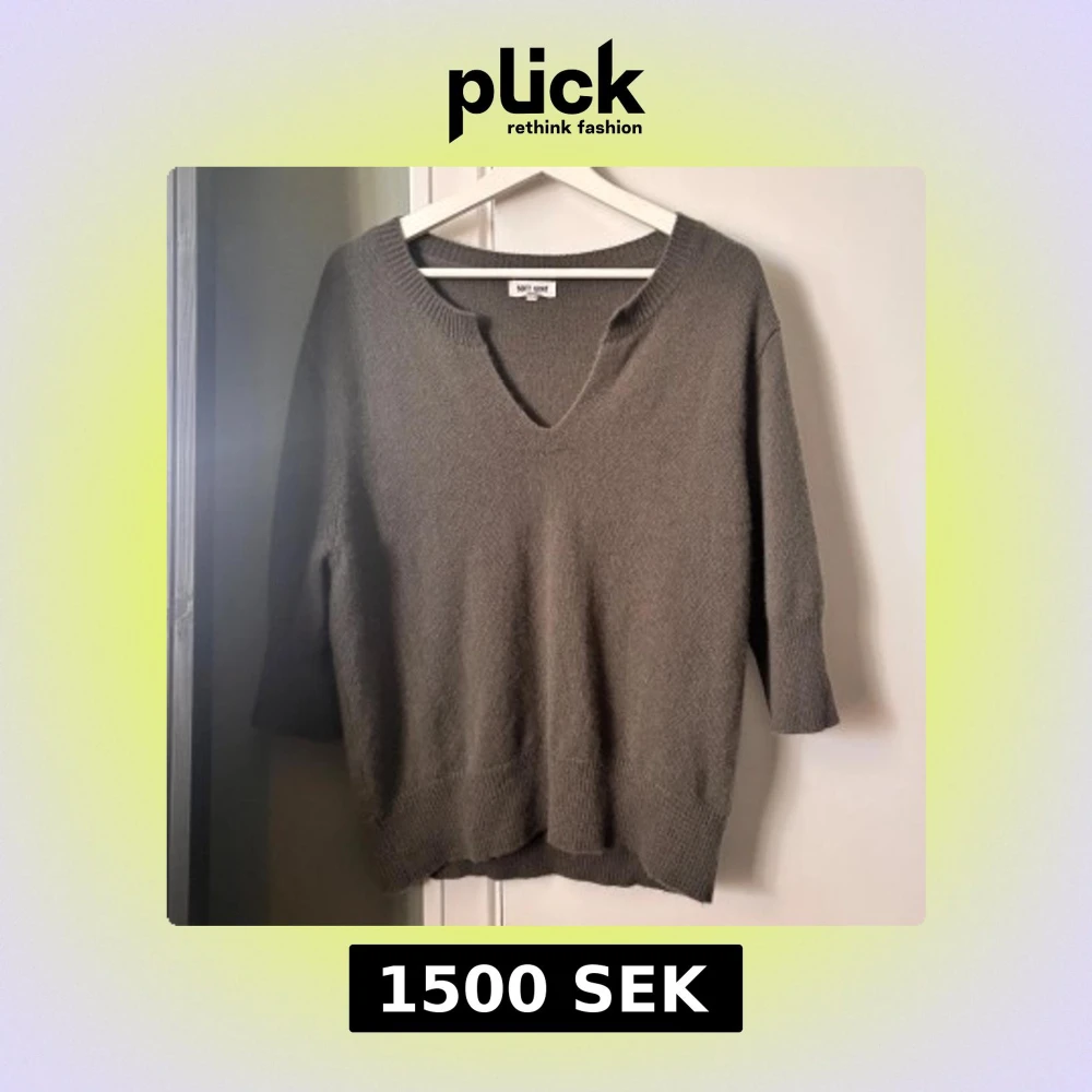 Mysig grå stickad tröja från Soft Goat med v-ringning och trekvartsärm. Tröjan har ribbade muddar vid ärmslut och nederkant, och är tillverkad i mjuk kashmir. Perfekt för lager-på-lager och chill dagar.