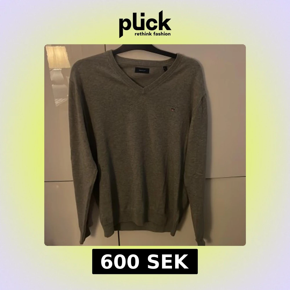 Grå v-ringad tröja från GANT i storlek XL. Klassisk design med ribbade muddar och diskret logga broderad på bröstet. Perfekt för dig som gillar stilrena och enkla plagg. Materialet är mjukt och känns skönt mot huden.