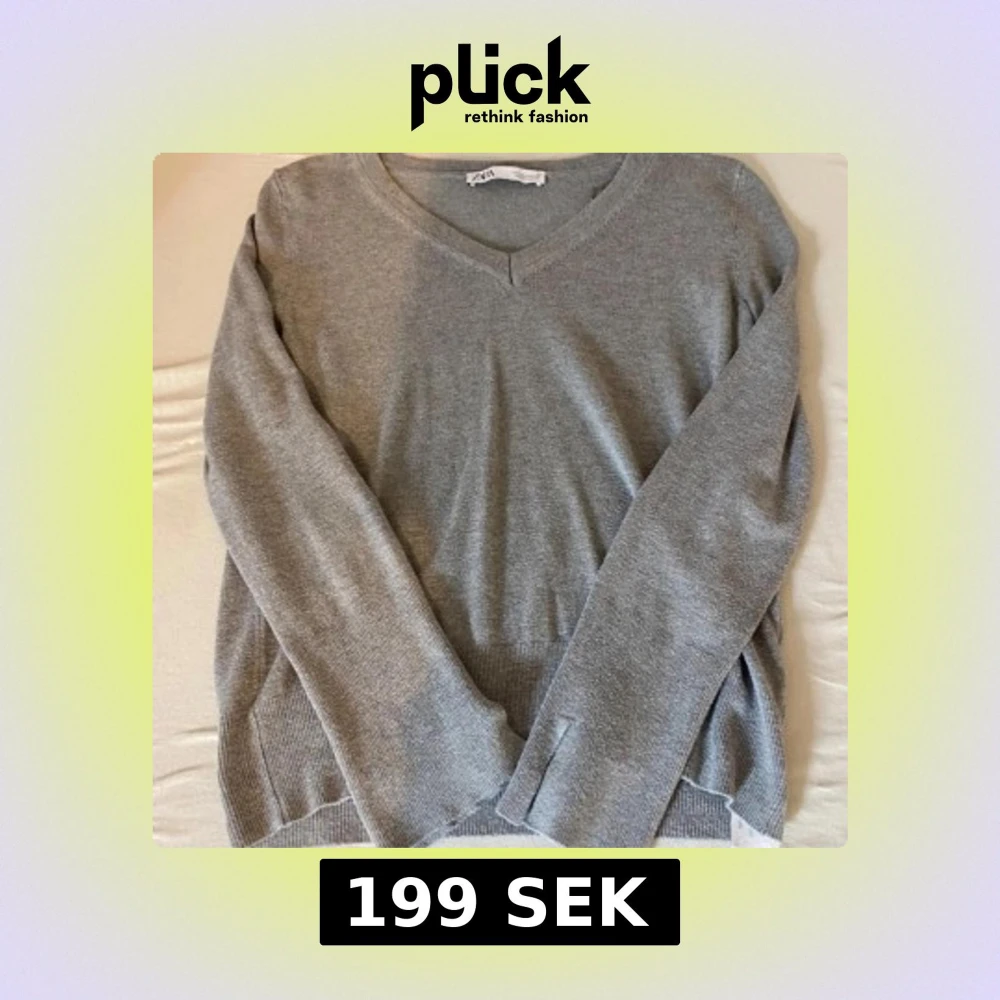 En stilren grå v-ringad tröja från Zara med lång ärm och ribbade muddar. Knappt använd och är i mycket bra skick