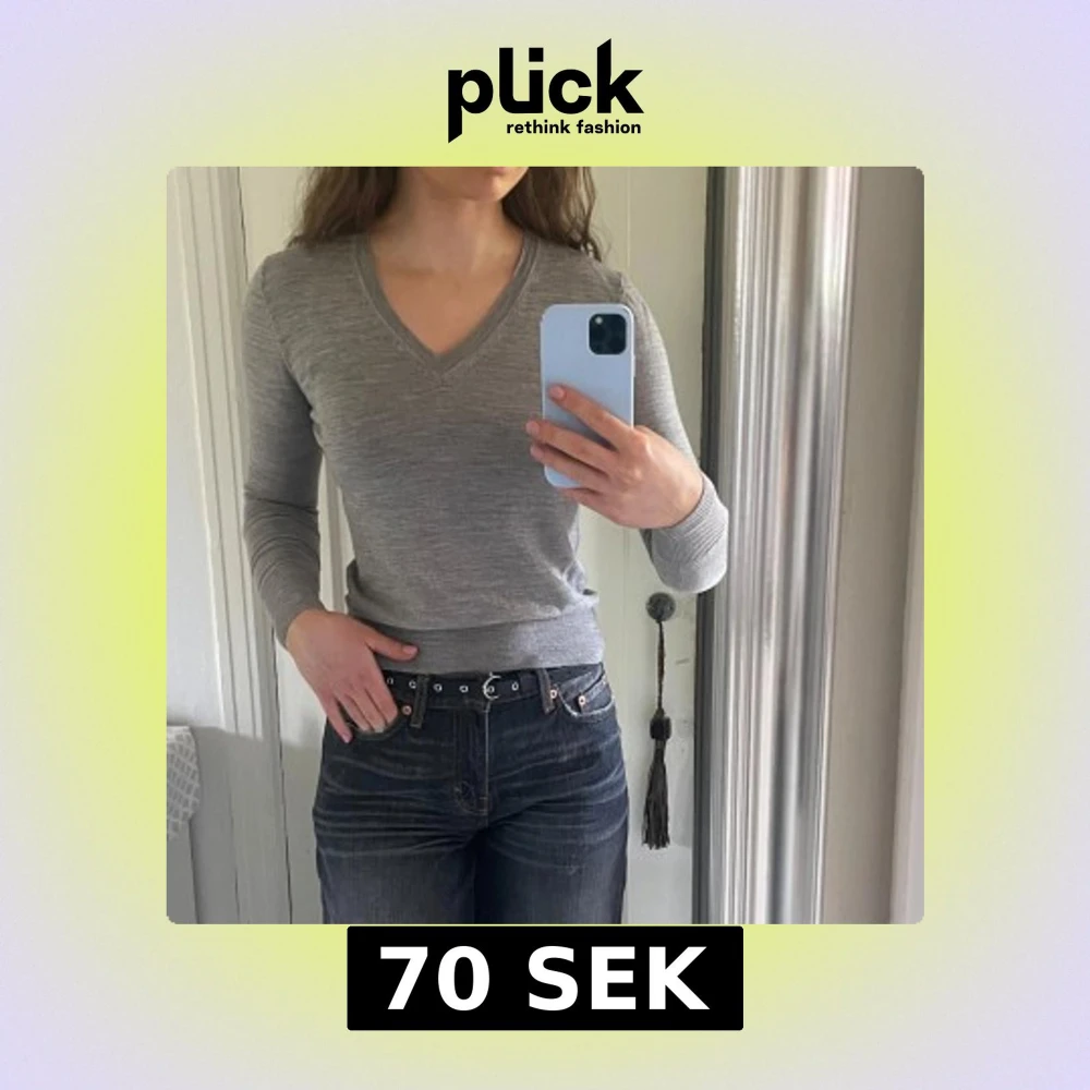 Snygg grå v-ringad tröja i mjuk ullblandning. Tröjan har lång ärm, ribbade muddar och en klassisk passform. Dessutom perfekt för lager-på-lager under höst och vinter! 💕💕Säljer den eftersom den tyvärr är lite för liten för mig:/