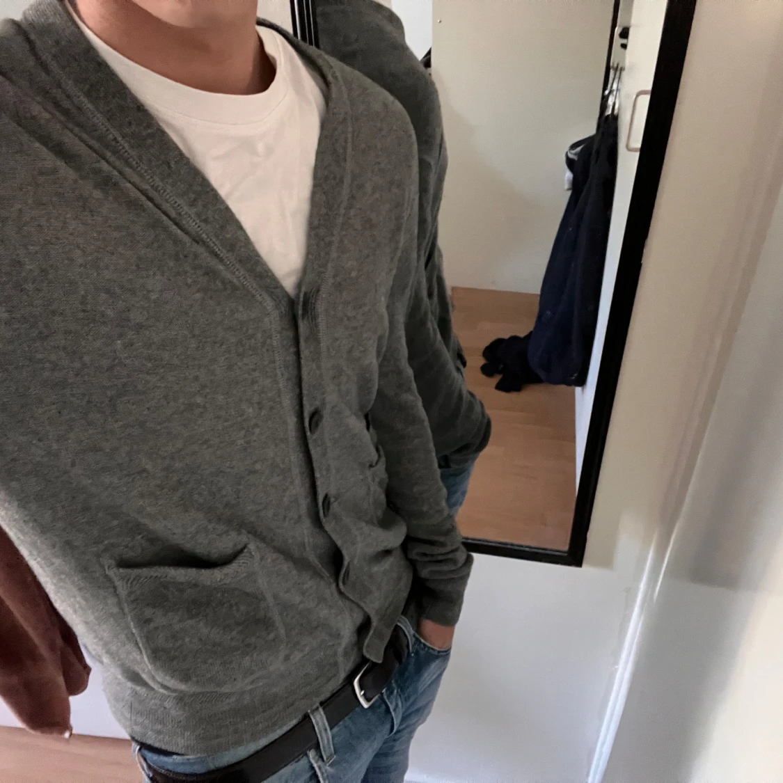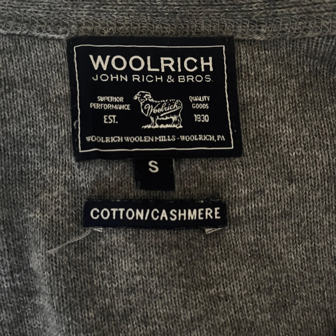 Snygg grå kofta från Woolrich i kashmir och bomull. Perfekt att slänga över en t-shirt för en chill och stilren look. Pris kan förhandlas, skriv gärna vid funderingar!