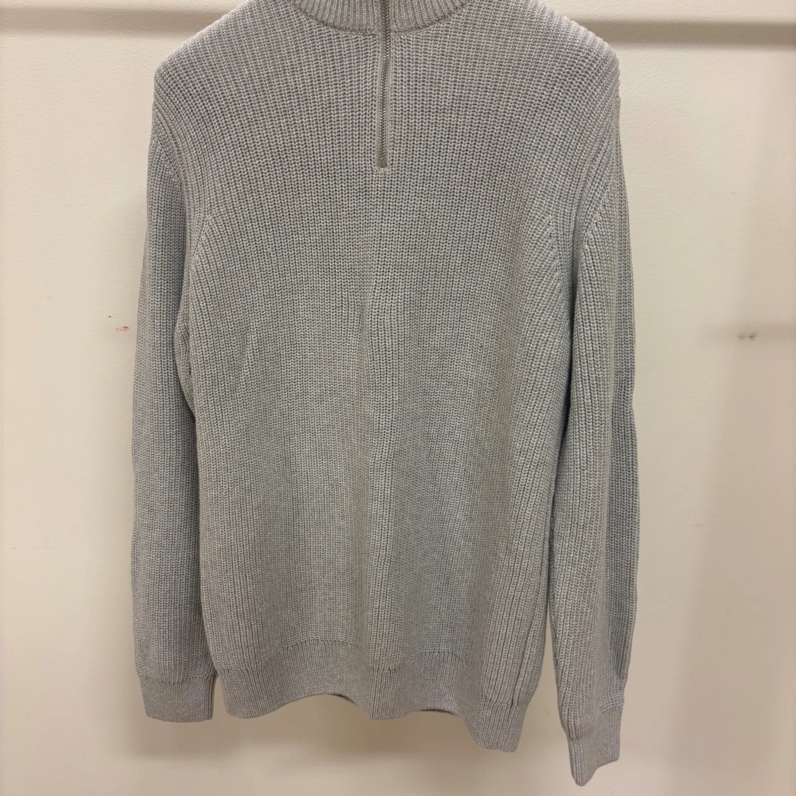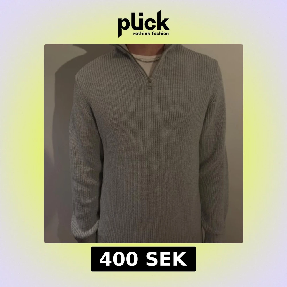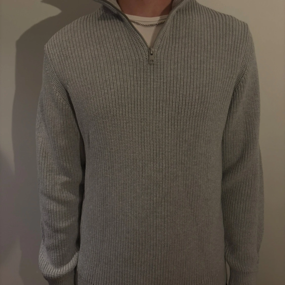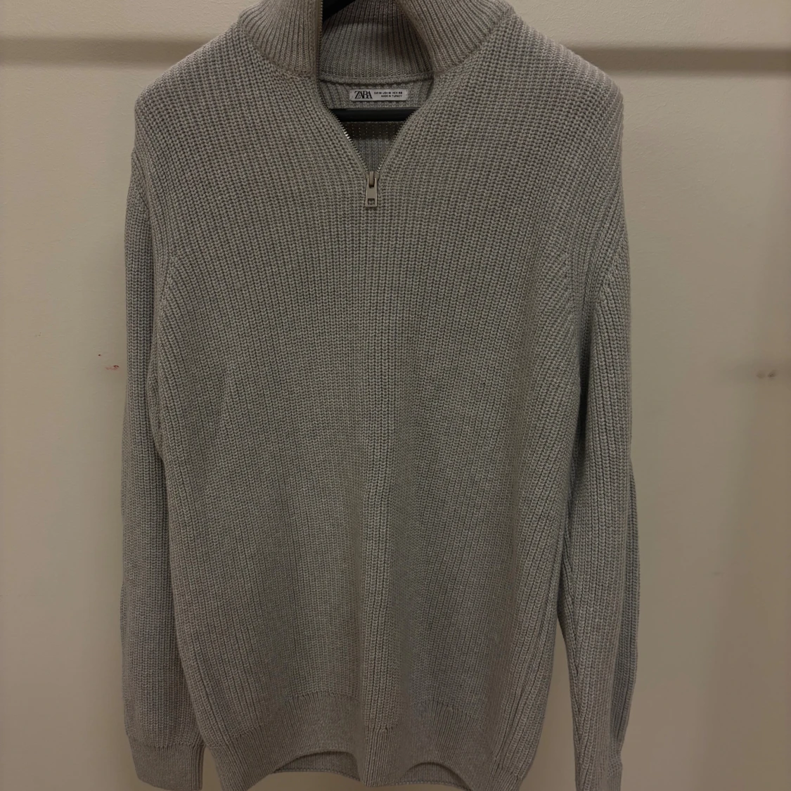 Säljer en grå stickad tröja från Zara med half zip och hög krage. Clean och stilren look. Perfekt för lager-på-lager och funkar året runt när du vill vara både chill och snygg. Aldrig använd!