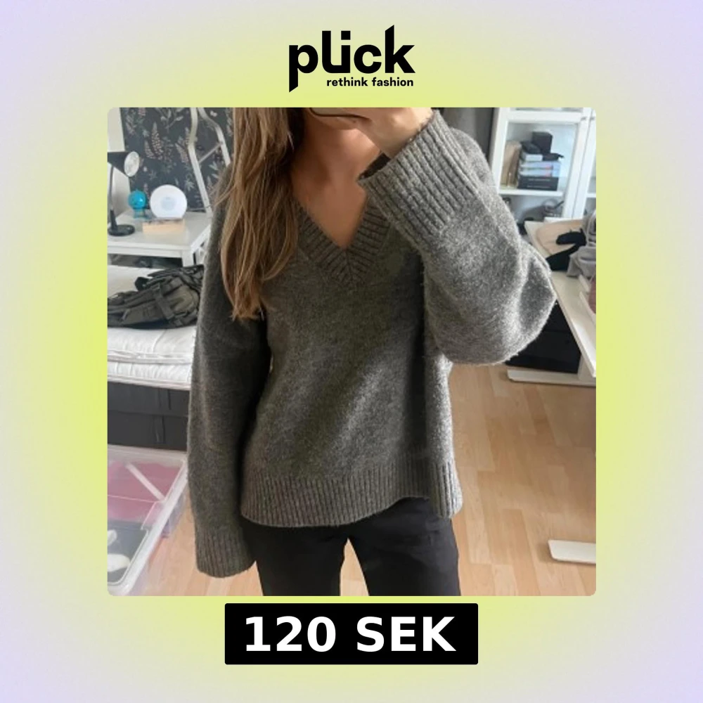 Mysig grå stickad tröja från Zara med djup v-ringning. Superskönt material och bra skick🩷