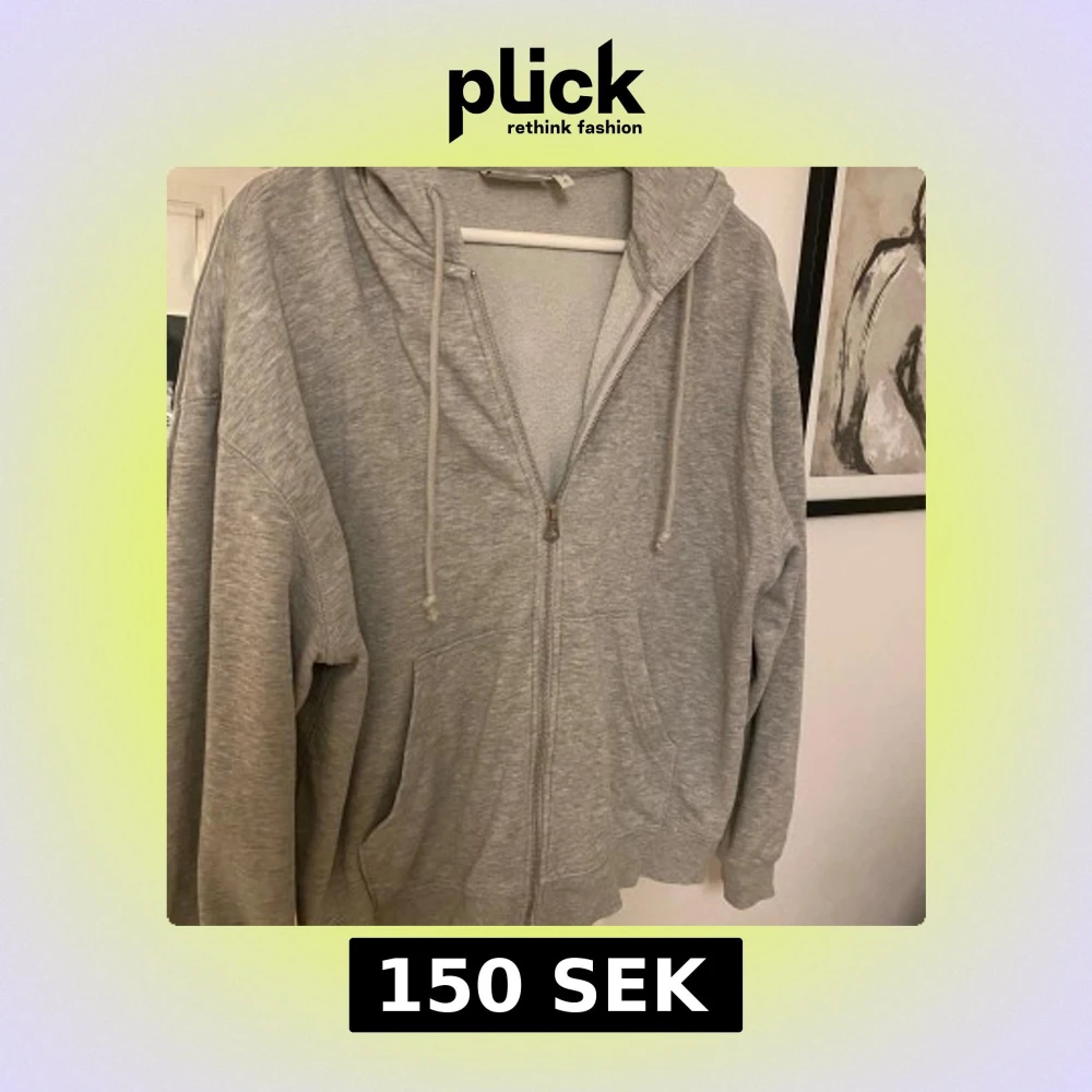Säljer en grå zip hoodie från Weekday med dragkedja och huva. Den har långa ärmar och en bekväm passform.