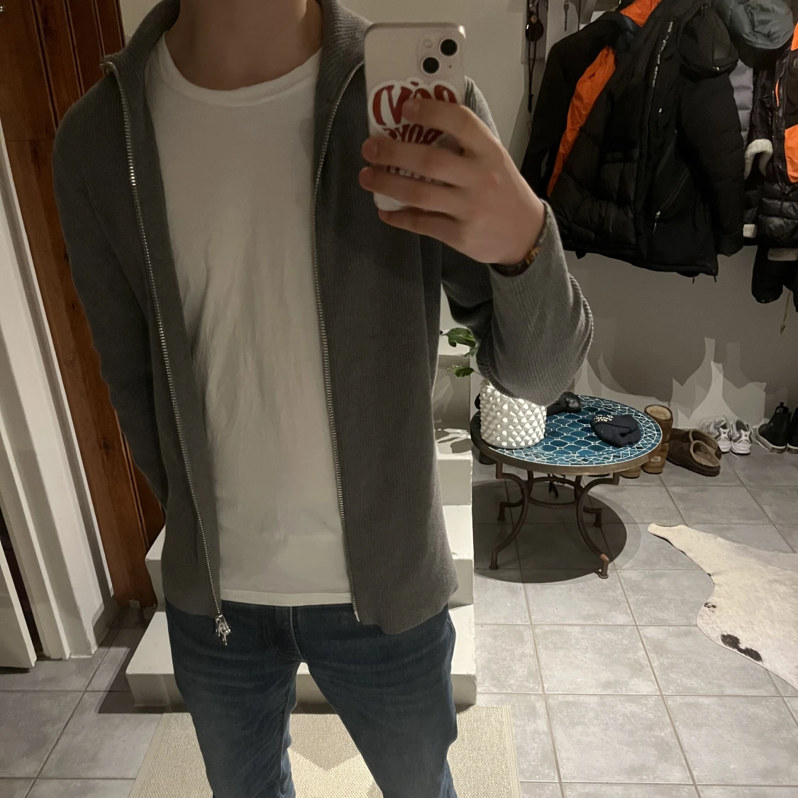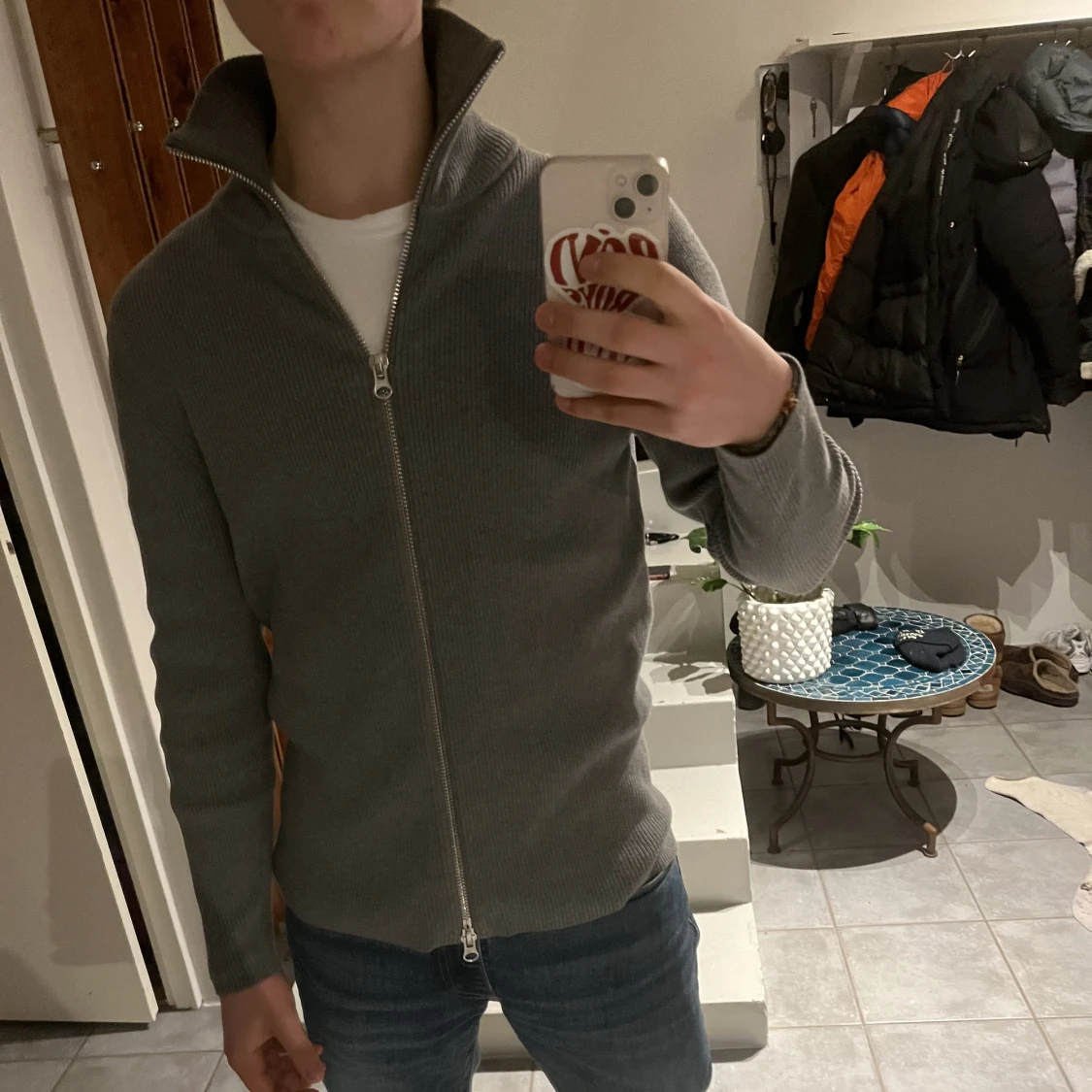 Grå cardigan zip