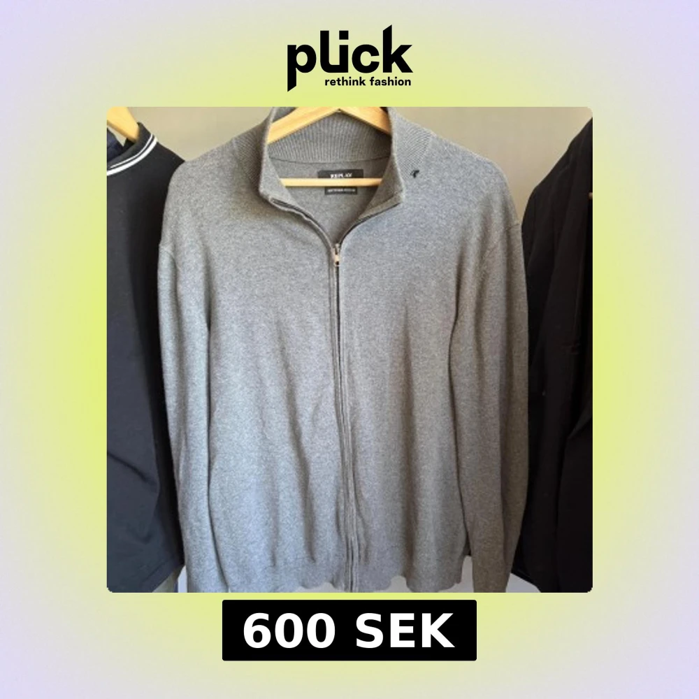 Säljer en stilren grå ziptröja från Replay i återvunnen bomull. Tröjan har hel dragkedja framtill, ribbad krage och muddar. Perfekt för lager-på-lager och enkel att matcha med det mesta. Klassisk och tidlös design.
