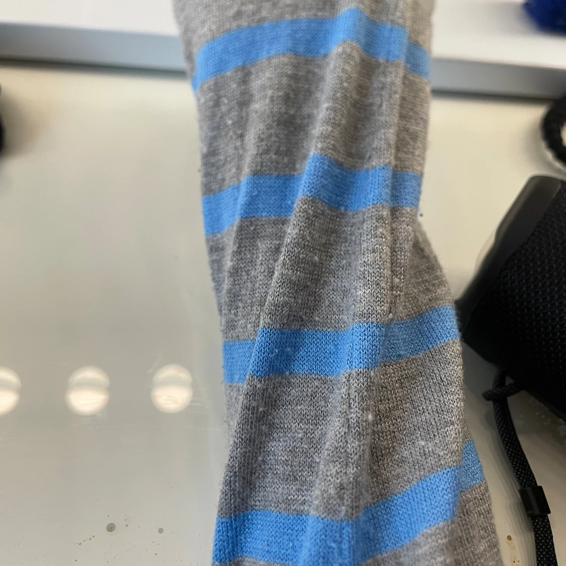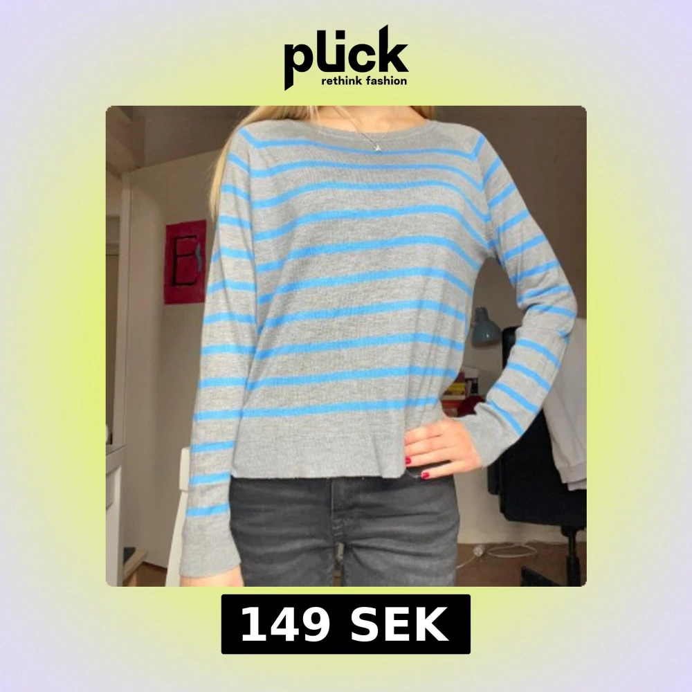 Säljer en stickad tröja i grått med blå ränder. Tröjan har en rak passform, rund halsringning och långa ärmar. Perfekt för dig som gillar en enkel men snygg stil. Supermjuk och skön att ha på sig. Är lite noppig som ni ser på andra bilden.