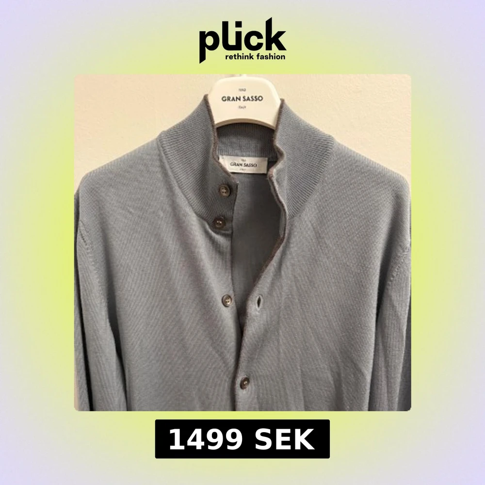 Snygg ljusgrå kofta från Gran Sasso med ribbad ståkrage och knappar hela vägen framtill. Tröjan är stickad i mjukt material och har långa ärmar med ribbade muddar. Perfekt för dig som gillar stilrena och klassiska plagg.