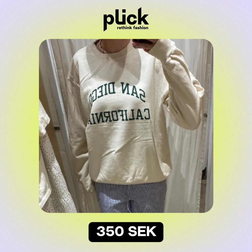 En fin crewneck/sweatshirt med tryck från Brandy Melville. Köpt i somras men aldrig använd. Helt fri från fläckar, är inte helt vit utan väldigt ljusbeige. Köpt för ca 450kr