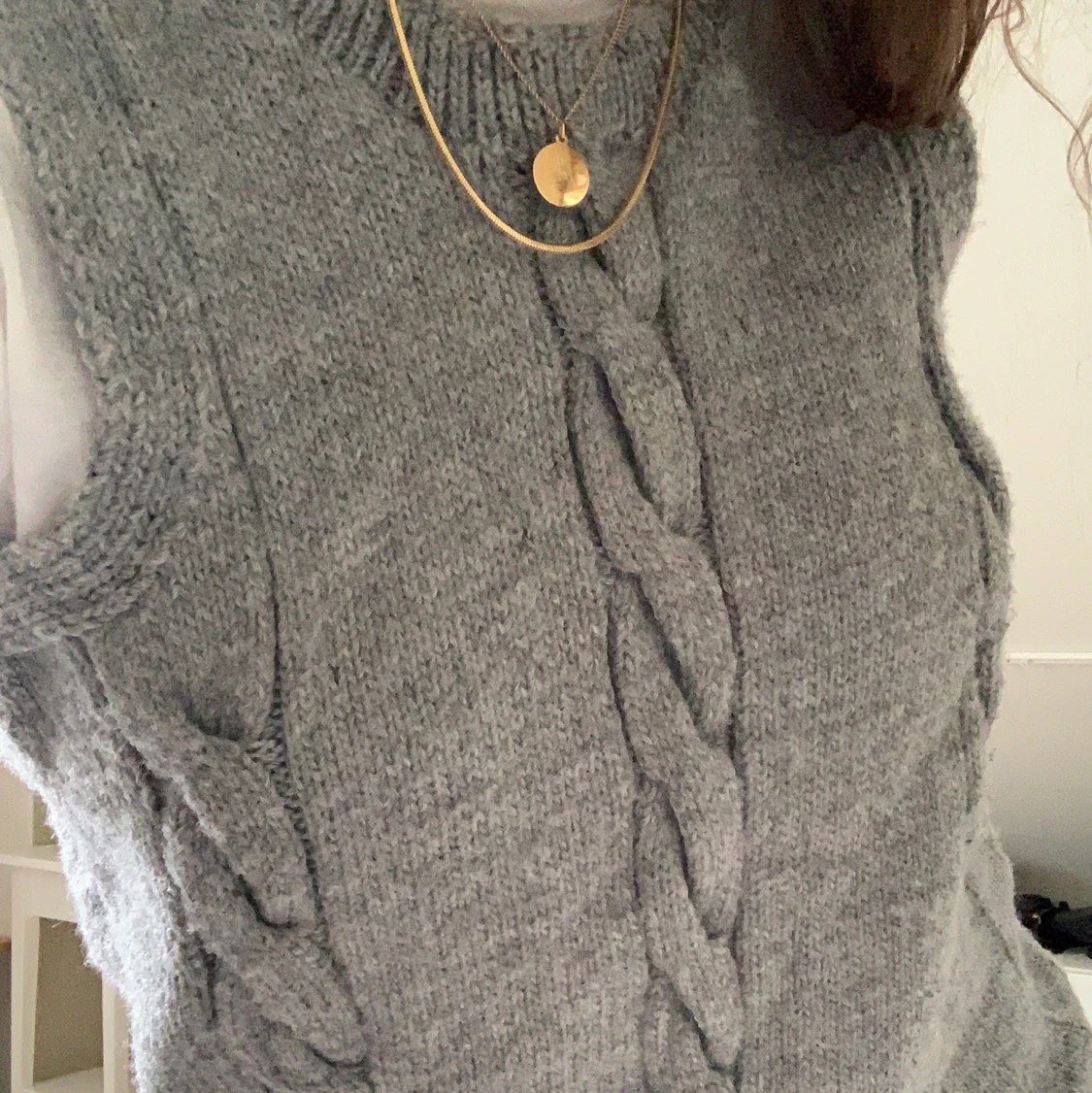 Den perfekta ”chunky sweater vest” som går att ha över exempelvis en klänning nu i sommar 🥰 Ingen lapp men skulle säga att den passar XS-M (ev mindre L). Frakt tillkommer! ✨