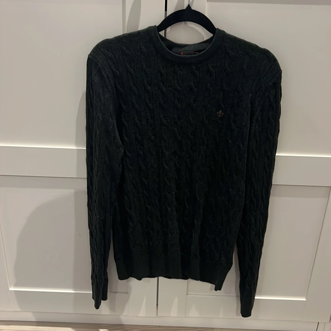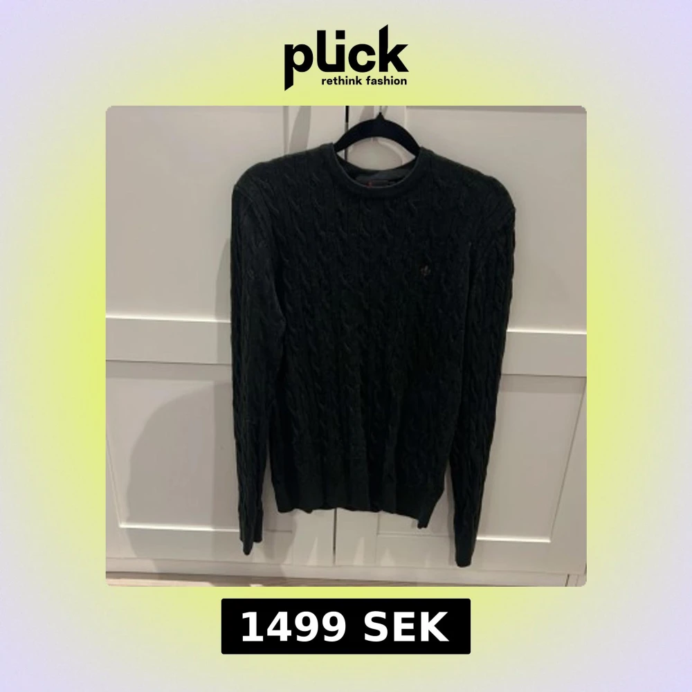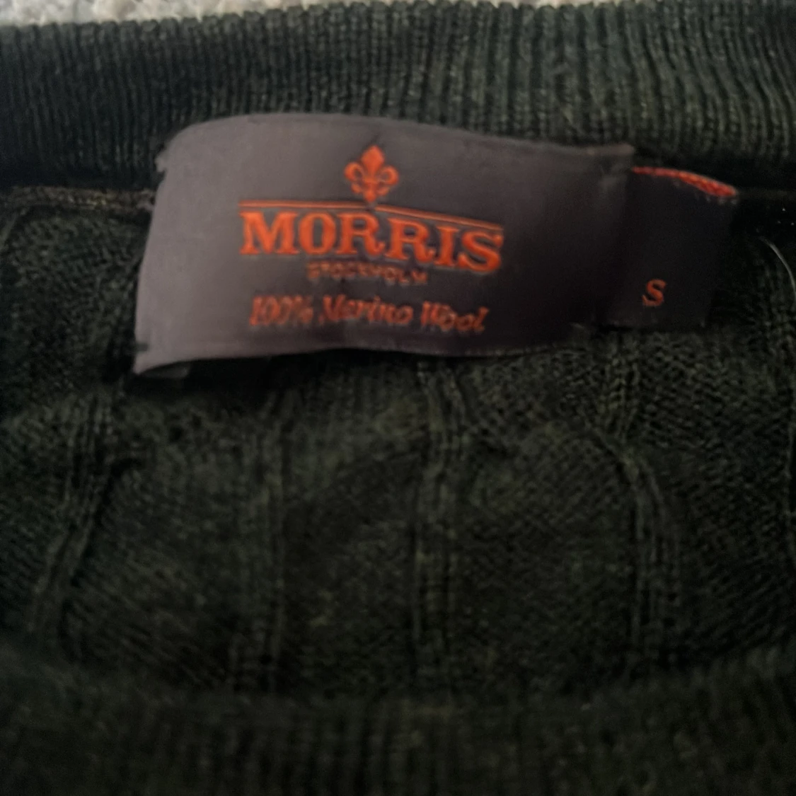 Snygg mörkgrön kabelstickad tröja från Morris. Klassisk rund halsringning, långärmad och med broderad logga på bröstet. Perfekt för dig som gillar stilrena och tidlösa plagg med premiumkänsla.Själv så är den för liten för mig men älskar tröjan! Nypris 1799 köpte den från NK