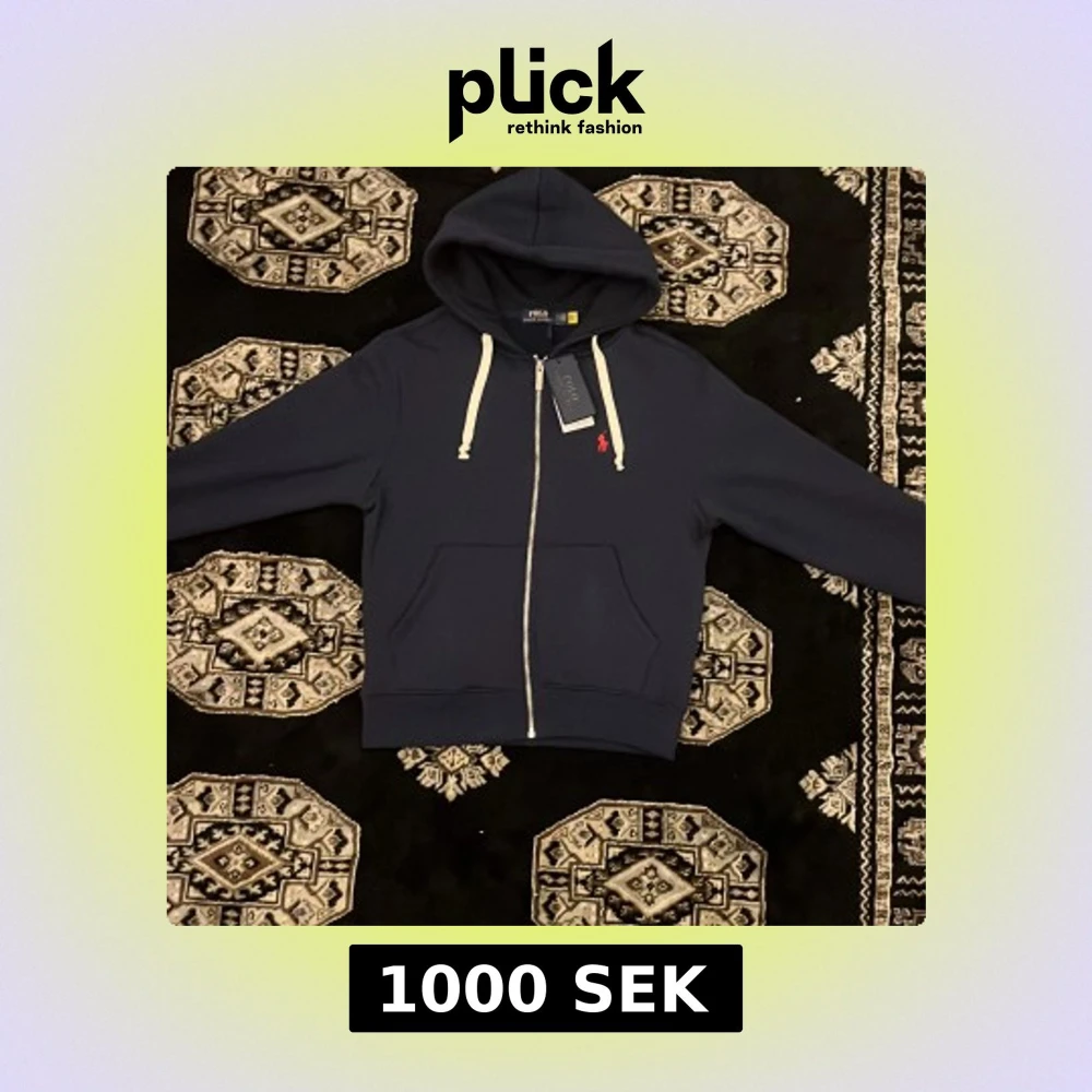 Marinblå hoodie från Polo Ralph Lauren med vit snörning, dragkedja och klassisk röd broderad logga på bröstet. Tröjan har huva, känguruficka och är tillverkad i mjuk bomullsmix. Perfekt för chill dagar och snygg streetstyle.