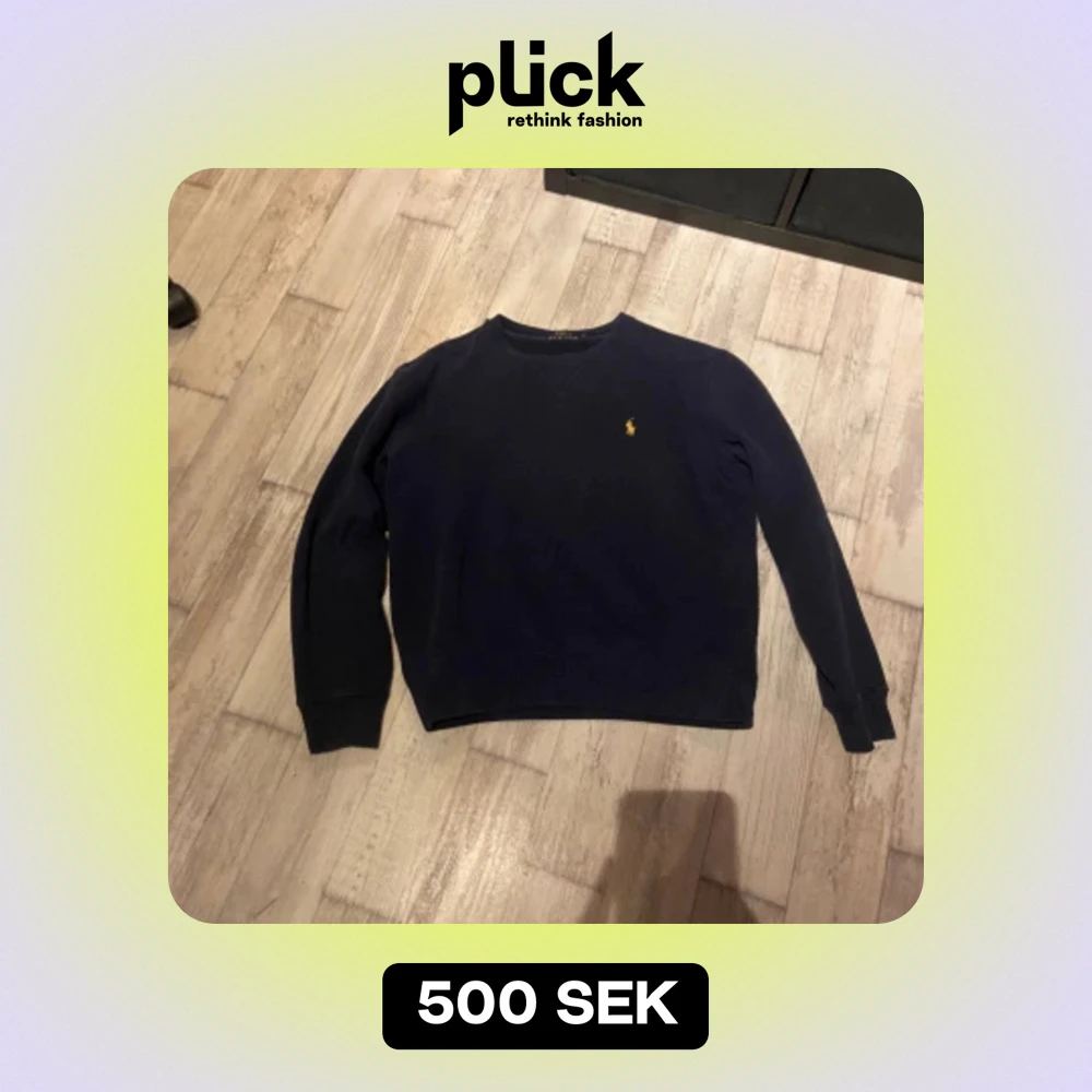 Marin blå Ralph Laurent sweatshirt. Tröjan har inga skador och är i allmänt bra skick. Storleken är S men passar åven XS då den är smått liten i storleken. Priset är ej fast pch byten kan vara intressant. Tveka inte att höra av er vid fler frågor.