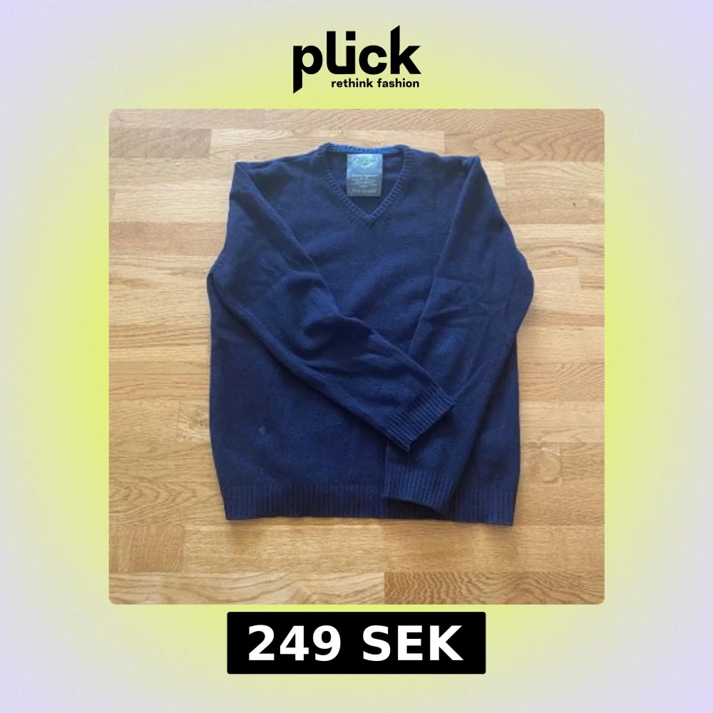 Mysig mörkblå tröja från Springfield i 100% ull. Klassisk v-ringad modell med ribbade muddar vid ärmslut och nederkant. Perfekt för kyliga dagar och enkel att matcha med jeans eller chinos. Det står XL på etiketten men den har dock krympt vilket gör att den nu passar M/L bättre.