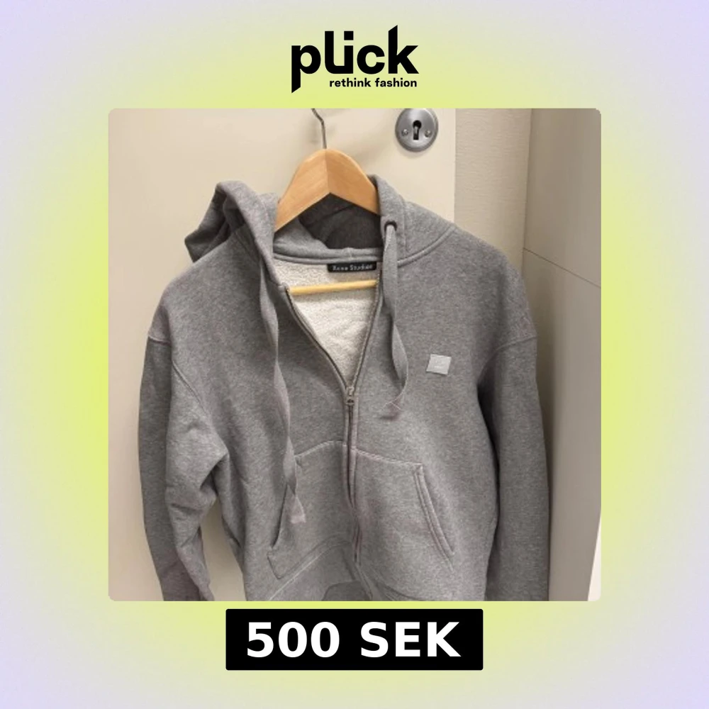Säljer en stilren grå hoodie från Acne Studios. Den har en dragkedja framtill och en klassisk huva.