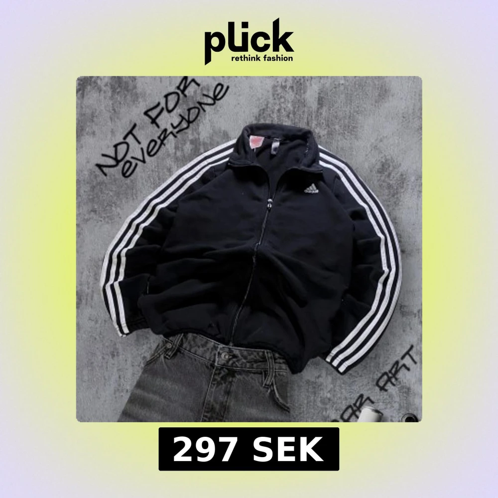Säljer en svart tröja från Adidas med de klassiska tre ränderna längs ärmarna. Jackan har dragkedja framtill och en liten Adidas-logga på bröstet samt 2 fickor. Perfekt för sportiga tillfällen eller en avslappnad stil. Skulle säga att den passar storlek S