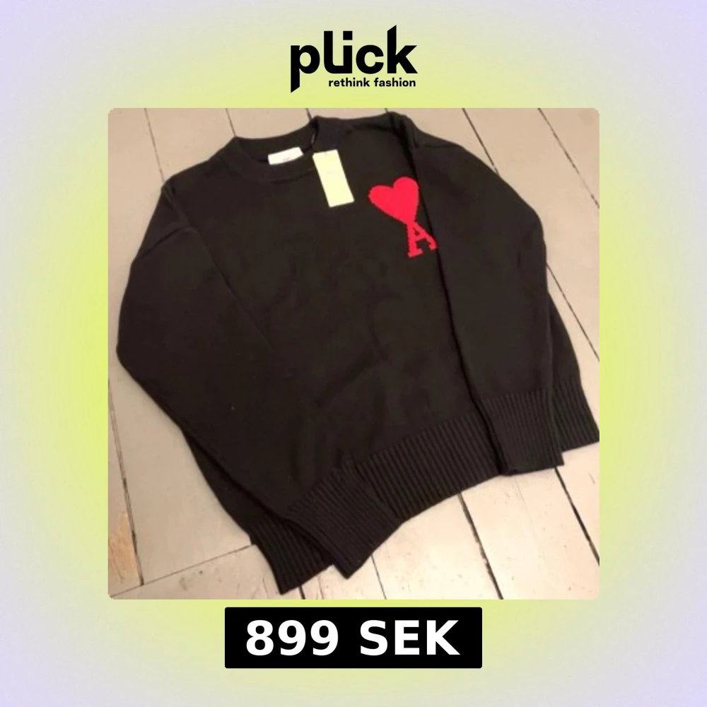 Svart stickad tröja från Ami Paris med röd hjärtapplikation och bokstaven A på bröstet. Tröjan har rund hals, ribbade muddar och lång ärm. Perfekt för dig som gillar stilrena detaljer och vill ha något som sticker ut.