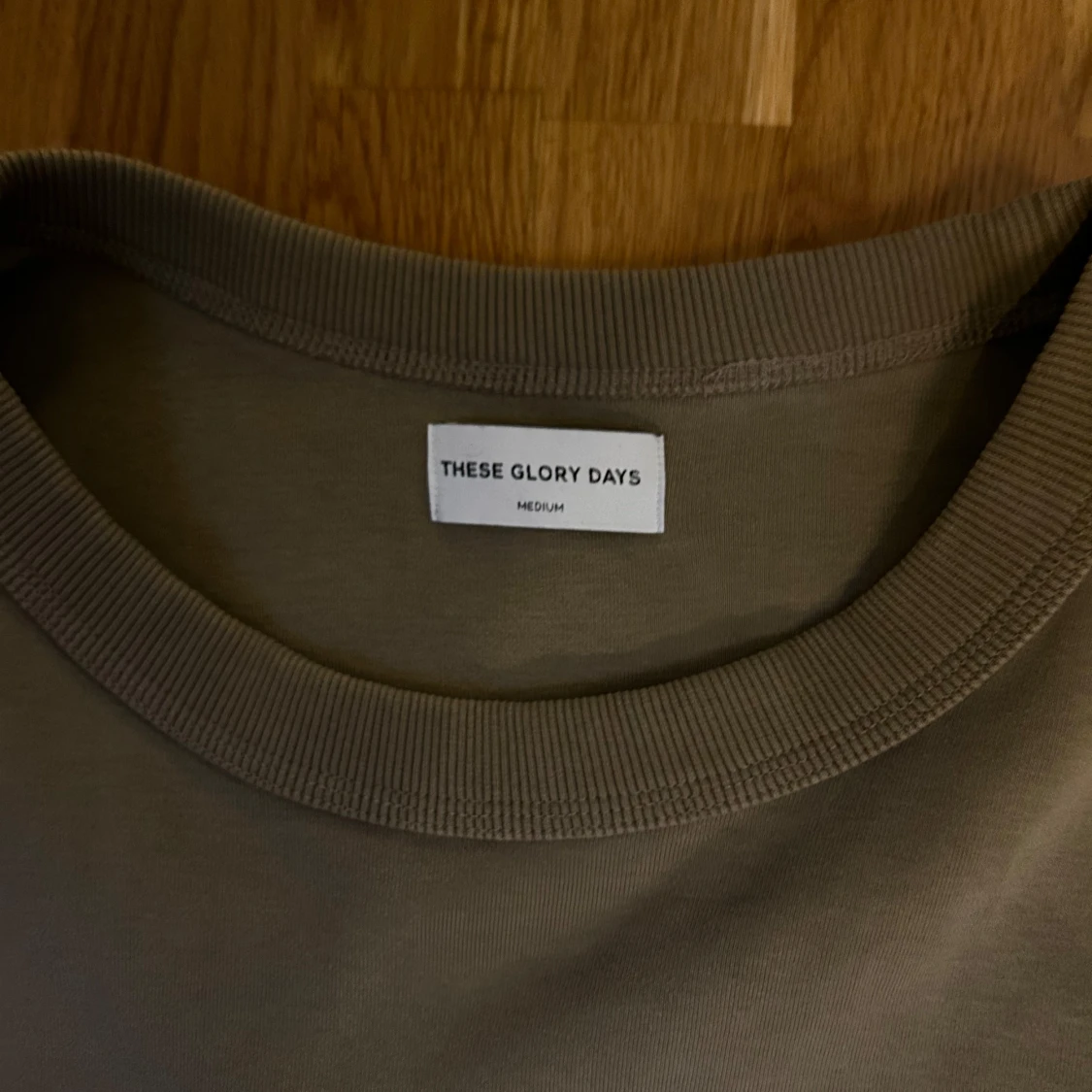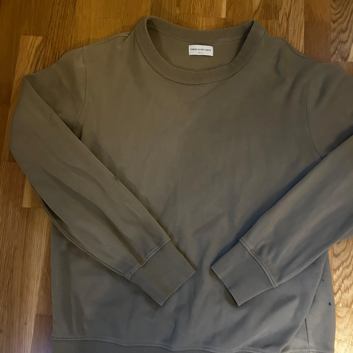 Säljer en stilren Oliv färgad sweatshirt från These Glory Days i storlek medium. Tröjan har rund halsringning, långa ärmar och ribbade muddar vid ärmslut och nederkant. Perfekt för en avslappnad och snygg look.