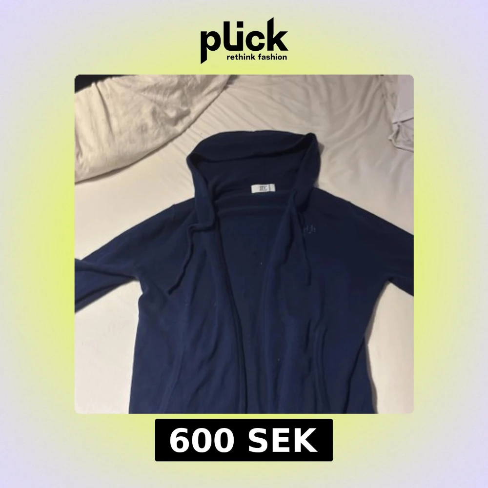 Säljer en mörkblå hoodie från Bvaldi med dragkedja framtill och huva. Tröjan har långa ärmar och en enkel, stilren design. Perfekt för en avslappnad look. Storlek S