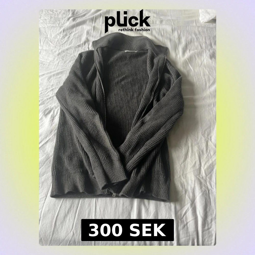 Snygg mörkgrå kofta med ribbad struktur och dragkedja framtill. Perfekt för lager-på-lager och har en hög krage som ger extra stilpoäng. Materialet är stickat och känns mjukt mot huden. Passar dig som gillar en clean och enkel look. Nypris 1000 knappt använd