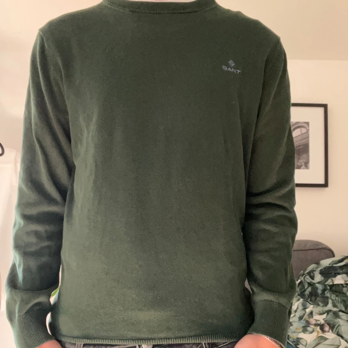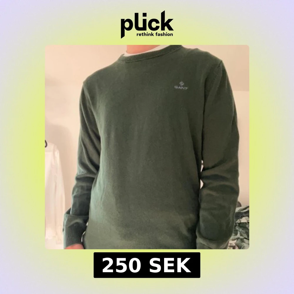 Mörkgrön stickad tröja från GANT med diskret logga på bröstet. Klassisk rund halsringning och långa ärmar. Perfekt för dig som gillar stilrena och tidlösa plagg. Skön passform och enkel att matcha med jeans. Pris kan diskuteras och förhandlas.