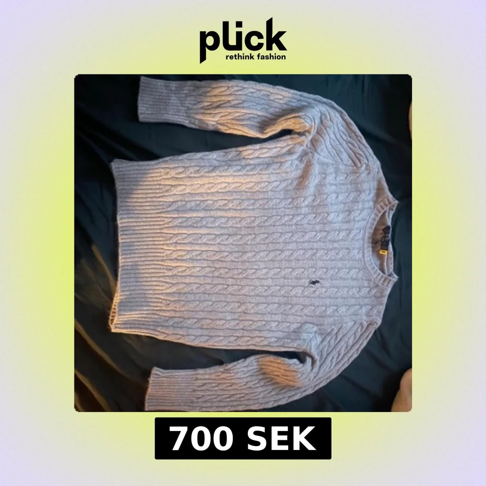 Kabelstickad grå tröja från Polo Ralph Lauren med rund halsringning och broderad logga på bröstet. Tröjan är i mjuk ull och har långa ärmar samt ribbade muddar. Perfekt för lager-på-lager under kyliga dagar. Storleken är L