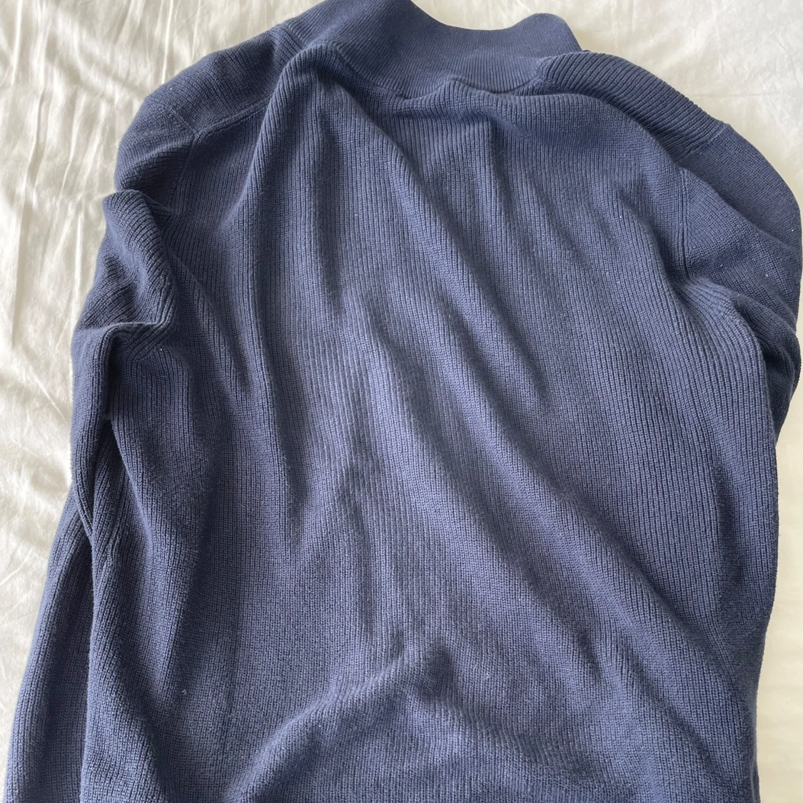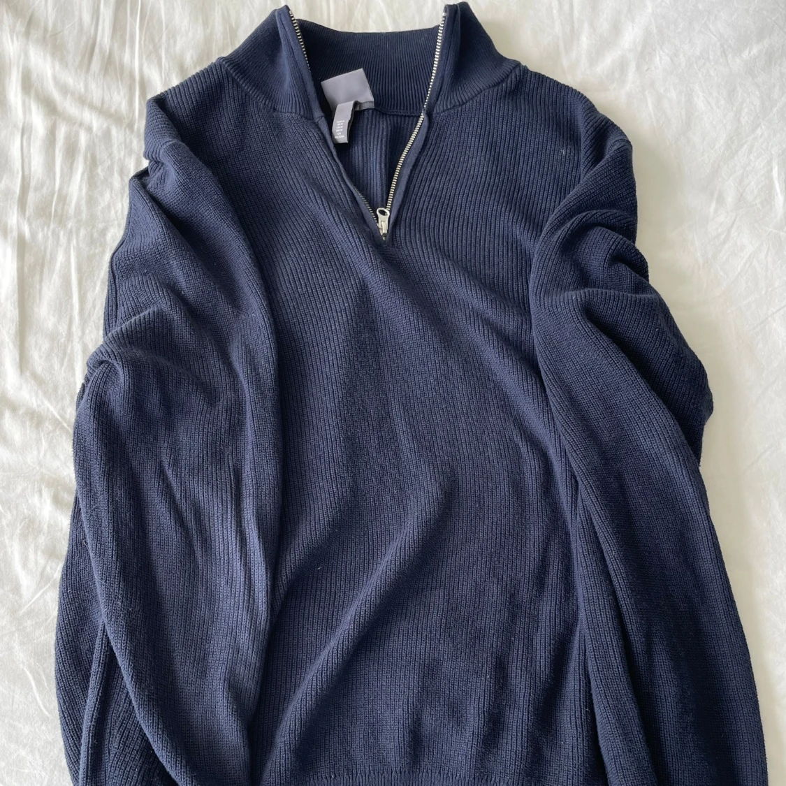Säljer en stilren och trendig mörkblå half-zip från H&M. Den är ribbad och har en dragkedja vid halsen för en modern look. Perfekt för både vardag och lite finare tillfällen. Tröjan är i bra skick och redo för en ny ägare! Frågor? Skriv!