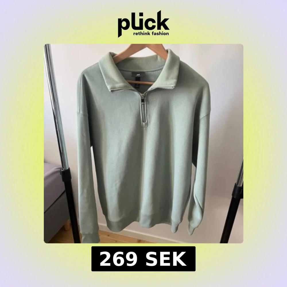 En halv Zip tröja i ljusgrön färg från H&M. Köpt för ett tag sedan, men har bara använt 1 gång, den har varit i garderoben resten av tiden. Den är 10/10 skick, denna säljs inte längre i butik, väldigt fin och bekväm, rekommenderar starkt!