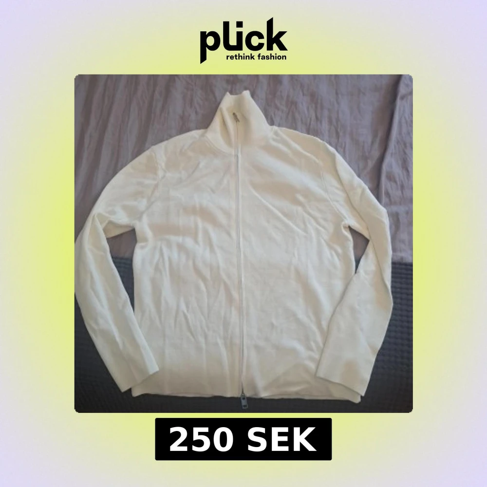 Vit kofta från H&M i regular fit med hel dragkedja framtill och hög krage. Långärmad och i mjukt material som passar perfekt till lager-på-lager. Enkel och clean stil som funkar till det mesta.