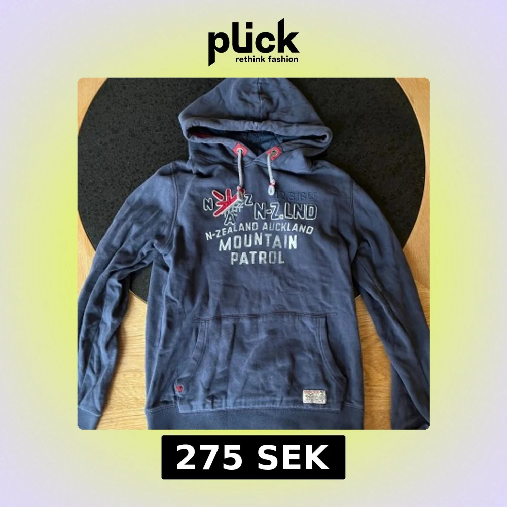 Säljer en mörkblå hoodie från NZA Auckland i storlek XS. Tröjan har tryck och broderad detalj framtill, snörning i huvan med röda detaljer och en stor magficka. Materialet är mjuk bomull och polyester, perfekt för chill dagar. Snygg och bekväm passform.