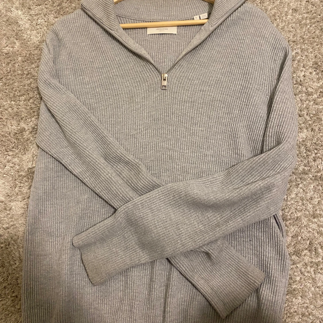 Säljer en grå half zip stickad tröja i storlek L. Tröjan är i bra skick. Väldigt enkel att matcha med det mesta. Säljer då jag ej använder den längre
