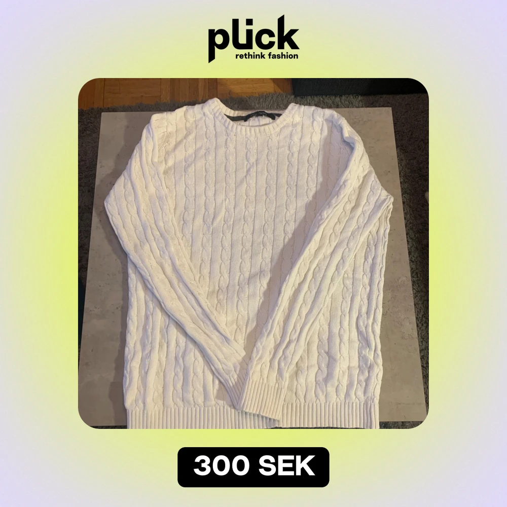 Säljer en superfin vit stickad tröja från Pullover Factory. Den har ett klassiskt flätmönster och är perfekt för både höst och vinter. Tröjan är långärmad och har ribbade muddar vid ärmslut och nederkant. Perfekt för att hålla sig varm och stilren! Storleken är S och färgen är vit, kom med frågor med mera