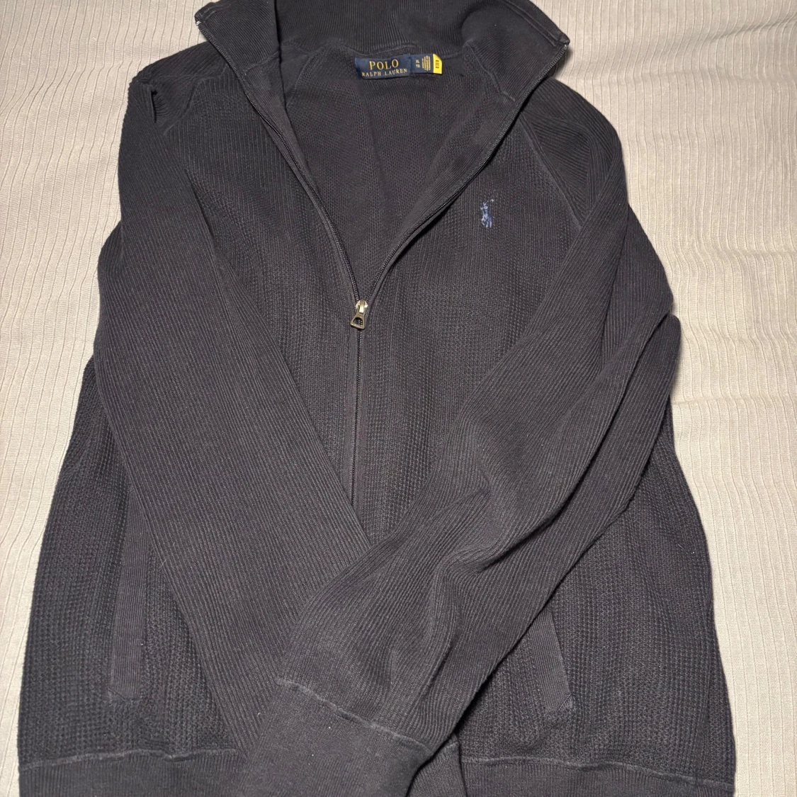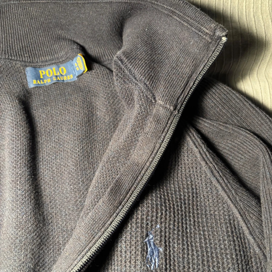 Snygg mörkgrå tröja från Polo Ralph Lauren med dragkedja och broderad logga på bröstet. Perfekt för en stilren och avslappnad look, men också för finare tillställningar.
