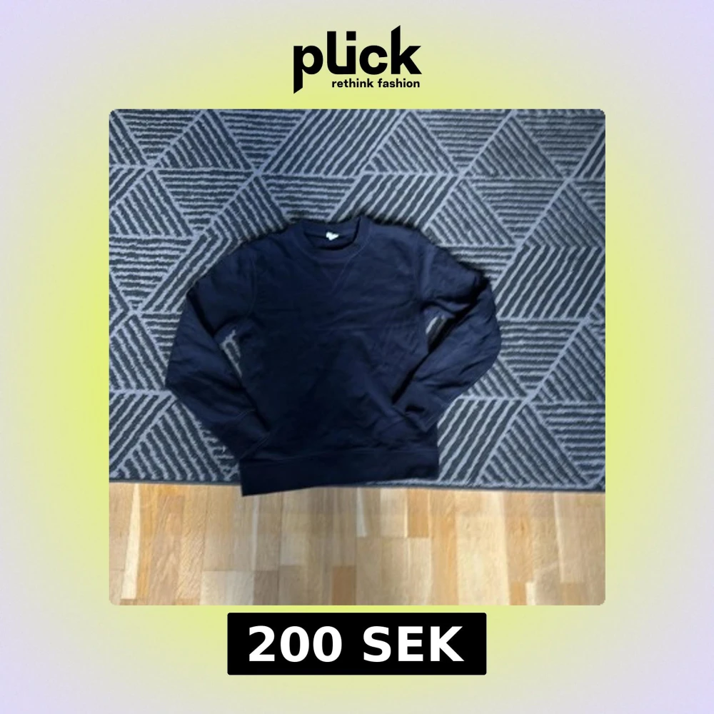 Säljer en stilren marinblå tröja med rund halsringning och långa ärmar. Perfekt för en enkel och klassisk look.