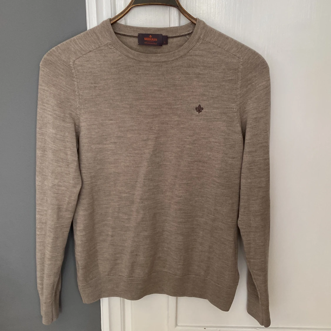 Beige Morris merinoull tröja i storlek S. Väldigt fint skick, endast använd fåtal gånger. Nypris: 1599kr. Mitt pris: 599kr