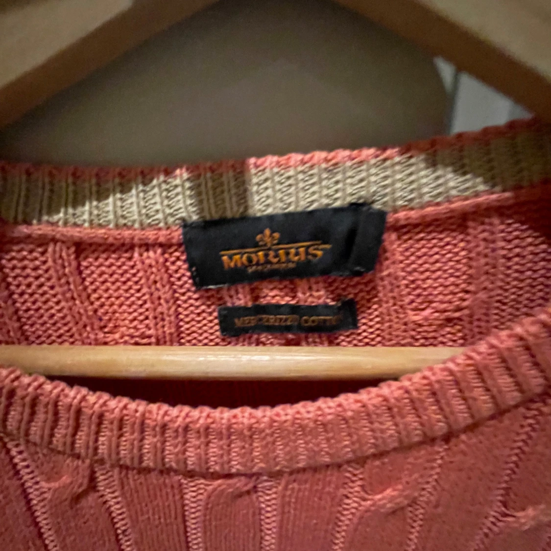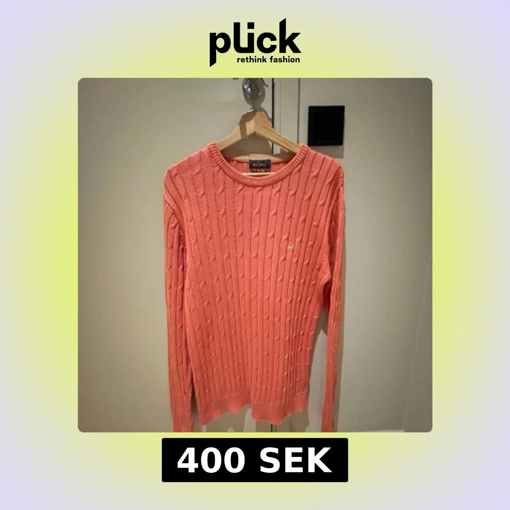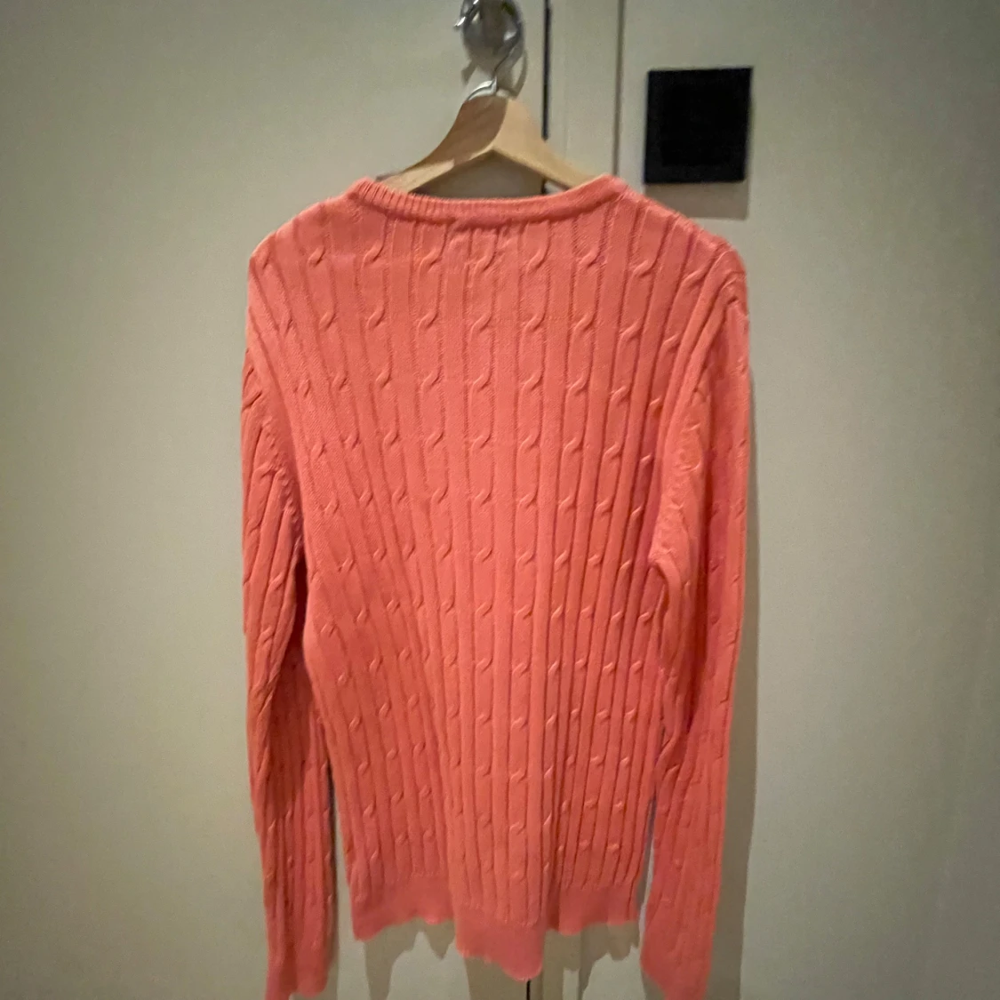 Säljer en snygg rosa stickad tröja från Morris. Tröjan har ett klassiskt kabelstickat mönster och långa ärmar. Perfekt för en stilren look. Skriv vid minsta lilla!👍🏼